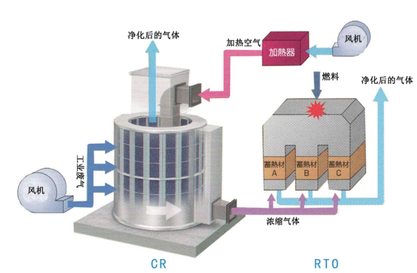 蓄熱式熱力(lì)燃燒(shāo)法同樣采用熱量(liàng)回收係統,回收燃燒(shāo)後(hòu)高溫氣體(tǐ)的熱量用於預熱進入(rù)係統的廢氣。