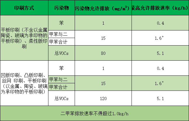 1、印刷時揮發的少量油墨廢氣,這部分廢氣揮發量小,主要成份為低級烴類(lèi),不含苯、甲苯等有害成分,產(chǎn)生量按油墨用量的10%計算,一般油墨產生的廢氣主要(yào)是油墨稀(xī)釋劑揮發產生的非甲烷總烴(tīng)類有(yǒu)機(jī)物。